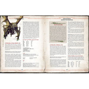 Ancient secrets, whispered lore, and collected facts concerning the alien and otherworldly horrors of the Cthulhu Mythos. A cavalcade of monsters and god-like alien intelligences beyond human understanding, all vividly detailed and portrayed. With over 250 entries to inspire countless adventures.