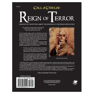 This book provides a stand-alone setting, with a plethora of historical details to help the Keeper bring Paris and the French Revolution to life. Profusely illustrated throughout, with detailed maps of Paris, the Palace of Versailles, and more! Alongside the two-part scenario of Reign of Terror is a range of scenario seeds, each providing roots for extending play and building a longer, more in-depth campaign.