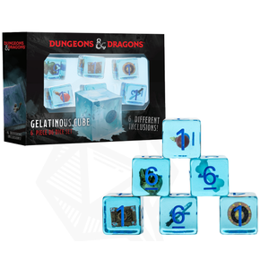 Tärningssetet är inspiererat av monstret Gelatinous Cube från det klassiska fantasyrollspelet Dungeons & Dragons.