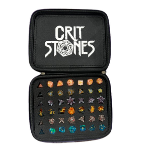The CritStones Arcanum is a premium dice carry case designed for collectors and players. It protects and showcases up to six complete dice sets with a precision high‑density foam inlay and a refined PU‑leather exterior featuring the CritStones logo. The Arcanum combines protection and presentation, ideal for customers who want a premium, practical storage solution.